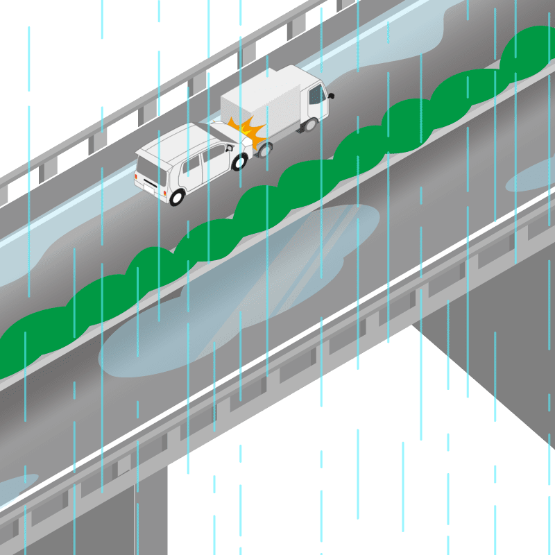 ・イラストに使用している各要素(車、背景、車、天候、信号、衝突地点など)は、代表的なイメージをイラスト化しており、色や形状等含め現実の事故の状況とは異なります。あくまで、事故のイメージとして参考までにご活用ください。