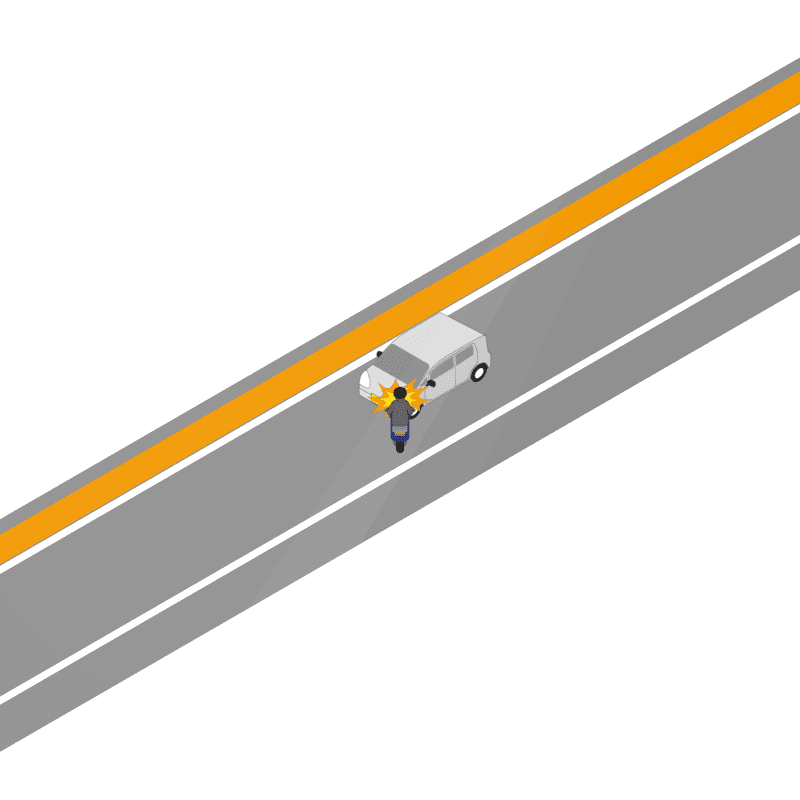 ・イラストに使用している各要素(車、背景、車、天候、信号、衝突地点など)は、代表的なイメージをイラスト化しており、色や形状等含め現実の事故の状況とは異なります。あくまで、事故のイメージとして参考までにご活用ください。