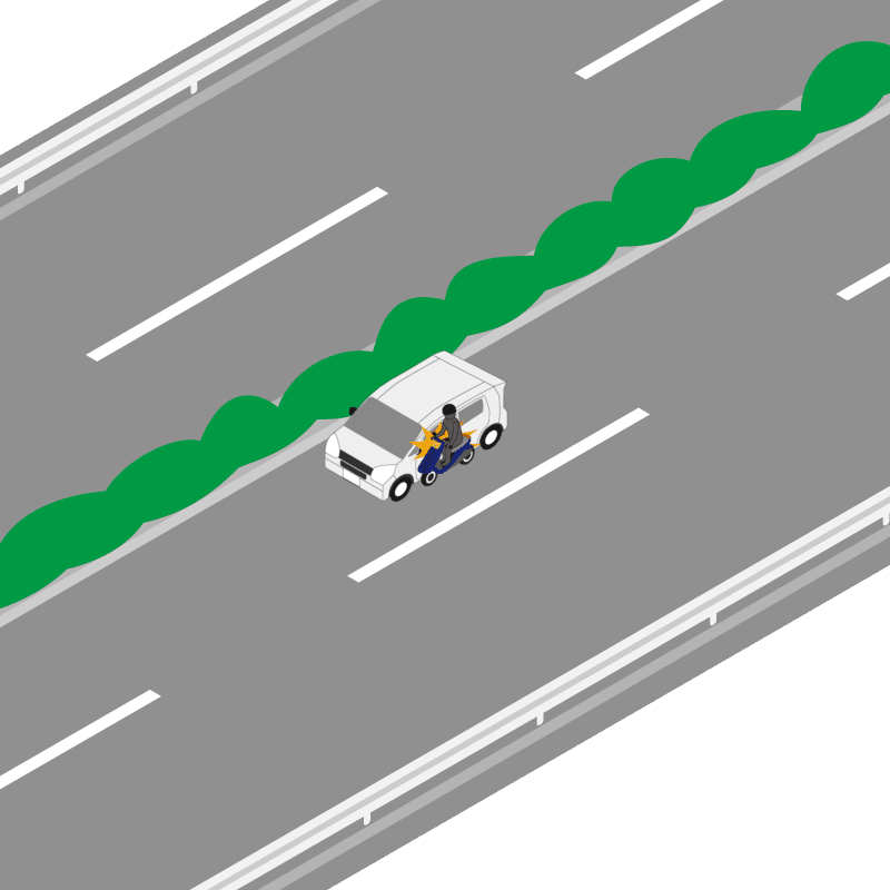 ・イラストに使用している各要素(車、背景、車、天候、信号、衝突地点など)は、代表的なイメージをイラスト化しており、色や形状等含め現実の事故の状況とは異なります。あくまで、事故のイメージとして参考までにご活用ください。