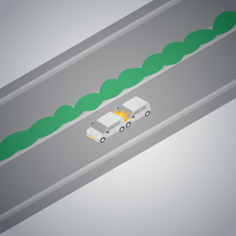 ・イラストに使用している各要素(車、背景、車、天候、信号、衝突地点など)は、代表的なイメージをイラスト化しており、色や形状等含め現実の事故の状況とは異なります。あくまで、事故のイメージとして参考までにご活用ください。