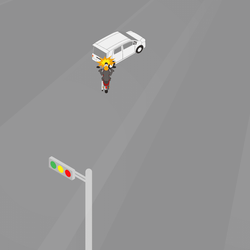 ・イラストに使用している各要素(車、背景、車、天候、信号、衝突地点など)は、代表的なイメージをイラスト化しており、色や形状等含め現実の事故の状況とは異なります。あくまで、事故のイメージとして参考までにご活用ください。