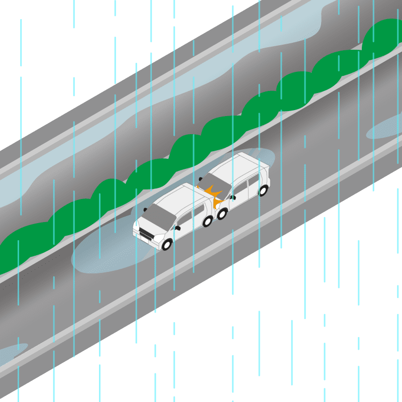 ・イラストに使用している各要素(車、背景、車、天候、信号、衝突地点など)は、代表的なイメージをイラスト化しており、色や形状等含め現実の事故の状況とは異なります。あくまで、事故のイメージとして参考までにご活用ください。