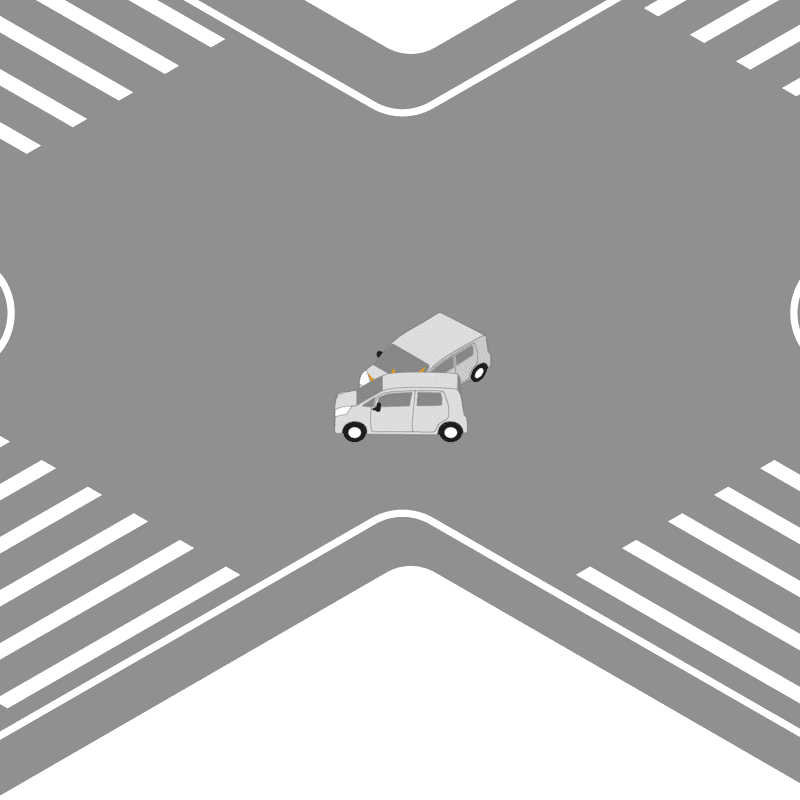 ・イラストに使用している各要素(車、背景、車、天候、信号、衝突地点など)は、代表的なイメージをイラスト化しており、色や形状等含め現実の事故の状況とは異なります。あくまで、事故のイメージとして参考までにご活用ください。