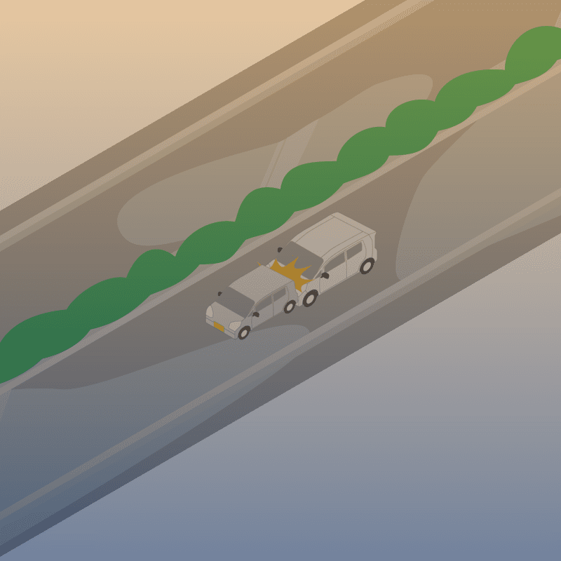 ・イラストに使用している各要素(車、背景、車、天候、信号、衝突地点など)は、代表的なイメージをイラスト化しており、色や形状等含め現実の事故の状況とは異なります。あくまで、事故のイメージとして参考までにご活用ください。