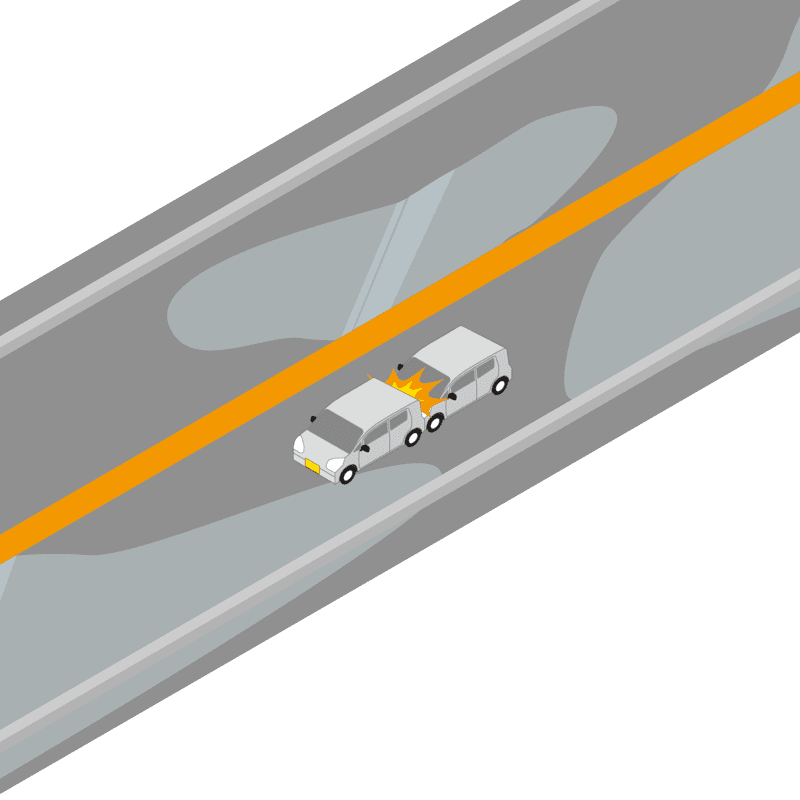 ・イラストに使用している各要素(車、背景、車、天候、信号、衝突地点など)は、代表的なイメージをイラスト化しており、色や形状等含め現実の事故の状況とは異なります。あくまで、事故のイメージとして参考までにご活用ください。