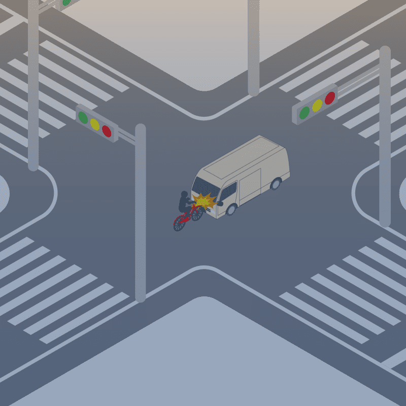 ・イラストに使用している各要素(車、背景、車、天候、信号、衝突地点など)は、代表的なイメージをイラスト化しており、色や形状等含め現実の事故の状況とは異なります。あくまで、事故のイメージとして参考までにご活用ください。