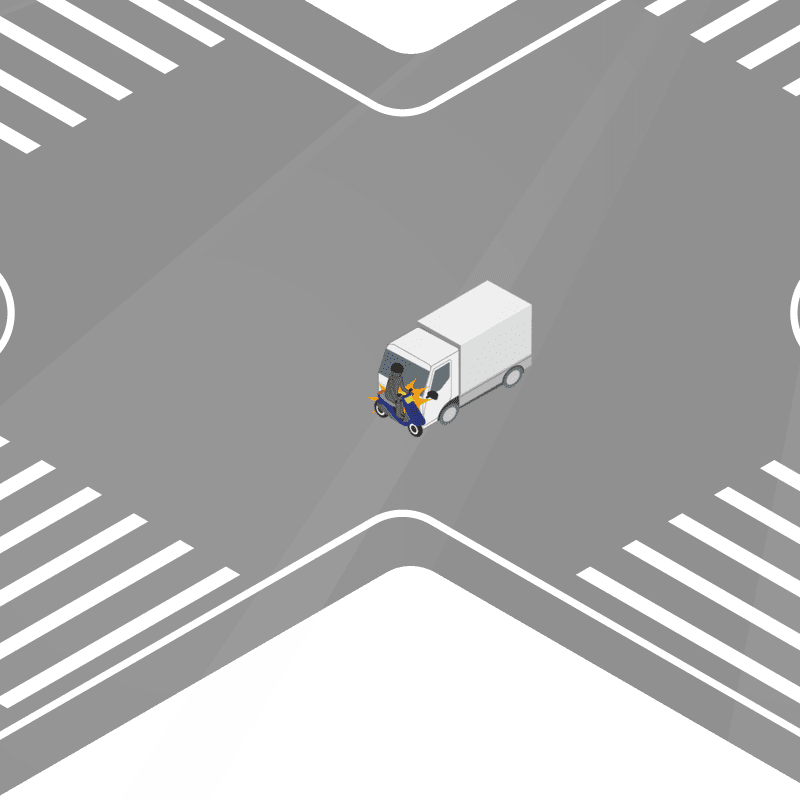 ・イラストに使用している各要素(車、背景、車、天候、信号、衝突地点など)は、代表的なイメージをイラスト化しており、色や形状等含め現実の事故の状況とは異なります。あくまで、事故のイメージとして参考までにご活用ください。