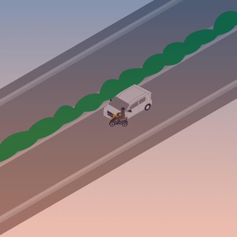 ・イラストに使用している各要素(車、背景、車、天候、信号、衝突地点など)は、代表的なイメージをイラスト化しており、色や形状等含め現実の事故の状況とは異なります。あくまで、事故のイメージとして参考までにご活用ください。