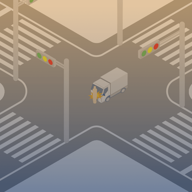 ・イラストに使用している各要素(車、背景、車、天候、信号、衝突地点など)は、代表的なイメージをイラスト化しており、色や形状等含め現実の事故の状況とは異なります。あくまで、事故のイメージとして参考までにご活用ください。