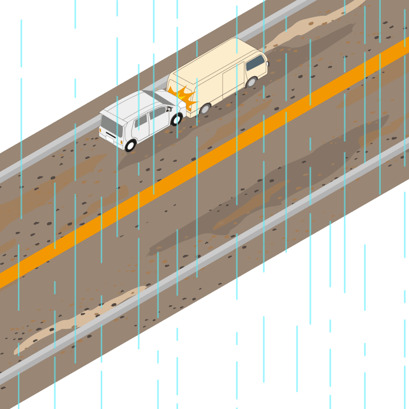 ・イラストに使用している各要素(車、背景、車、天候、信号、衝突地点など)は、代表的なイメージをイラスト化しており、色や形状等含め現実の事故の状況とは異なります。あくまで、事故のイメージとして参考までにご活用ください。