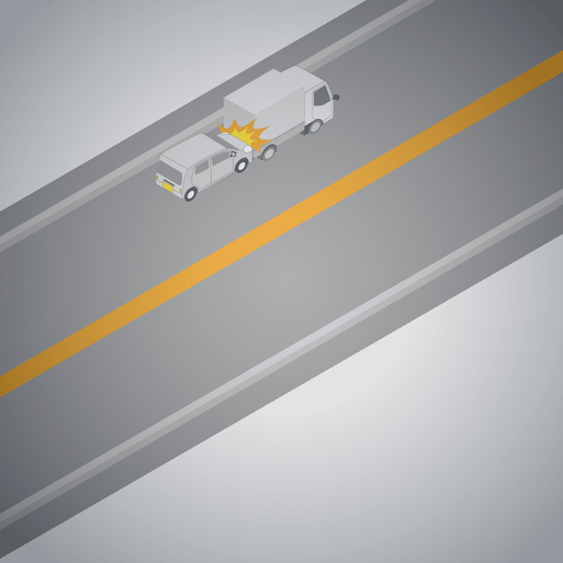 ・イラストに使用している各要素(車、背景、車、天候、信号、衝突地点など)は、代表的なイメージをイラスト化しており、色や形状等含め現実の事故の状況とは異なります。あくまで、事故のイメージとして参考までにご活用ください。