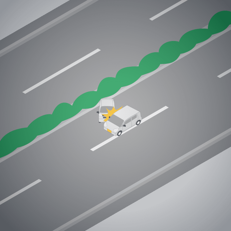 ・イラストに使用している各要素(車、背景、車、天候、信号、衝突地点など)は、代表的なイメージをイラスト化しており、色や形状等含め現実の事故の状況とは異なります。あくまで、事故のイメージとして参考までにご活用ください。