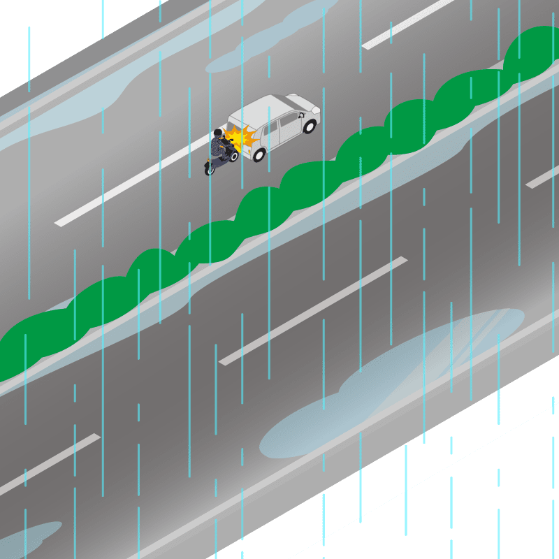 ・イラストに使用している各要素(車、背景、車、天候、信号、衝突地点など)は、代表的なイメージをイラスト化しており、色や形状等含め現実の事故の状況とは異なります。あくまで、事故のイメージとして参考までにご活用ください。