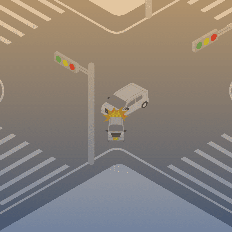 ・イラストに使用している各要素(車、背景、車、天候、信号、衝突地点など)は、代表的なイメージをイラスト化しており、色や形状等含め現実の事故の状況とは異なります。あくまで、事故のイメージとして参考までにご活用ください。