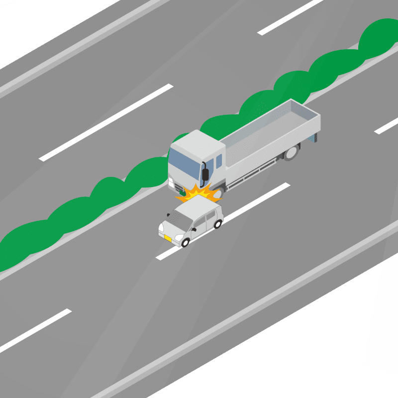 ・イラストに使用している各要素(車、背景、車、天候、信号、衝突地点など)は、代表的なイメージをイラスト化しており、色や形状等含め現実の事故の状況とは異なります。あくまで、事故のイメージとして参考までにご活用ください。