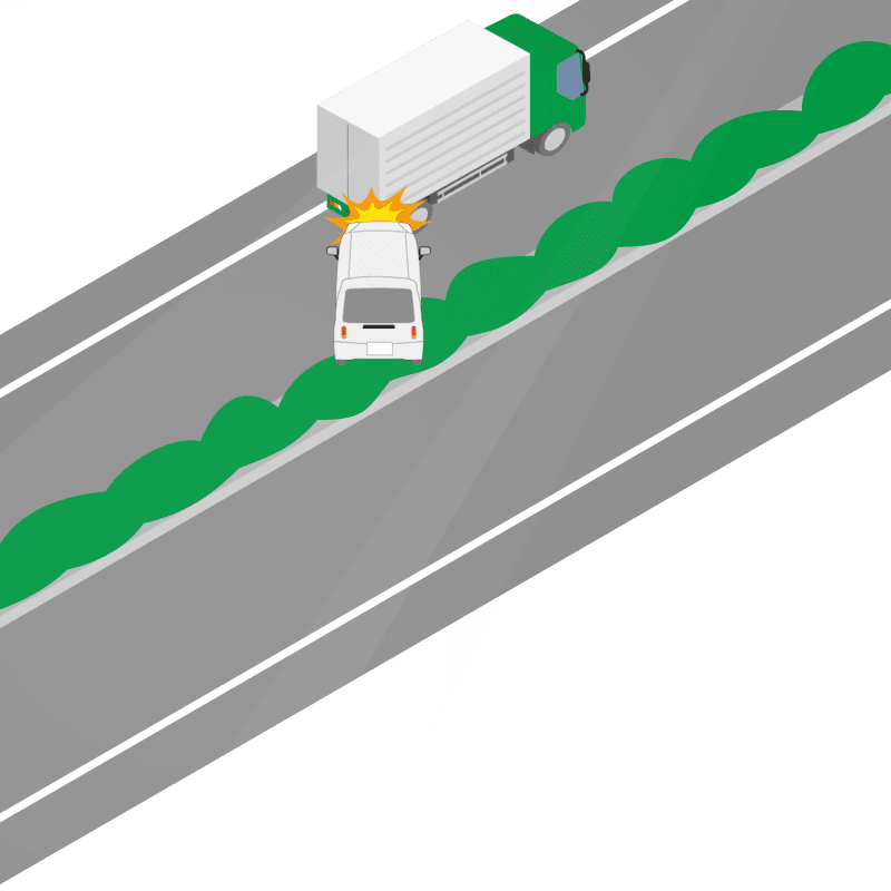 ・イラストに使用している各要素(車、背景、車、天候、信号、衝突地点など)は、代表的なイメージをイラスト化しており、色や形状等含め現実の事故の状況とは異なります。あくまで、事故のイメージとして参考までにご活用ください。
