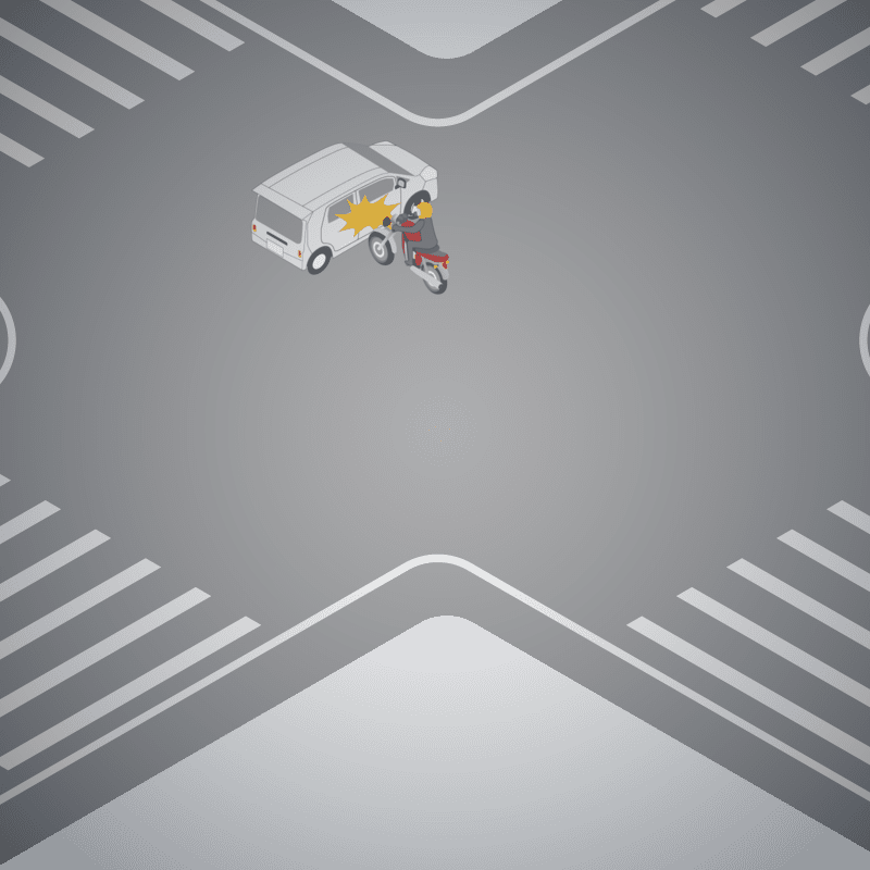 ・イラストに使用している各要素(車、背景、車、天候、信号、衝突地点など)は、代表的なイメージをイラスト化しており、色や形状等含め現実の事故の状況とは異なります。あくまで、事故のイメージとして参考までにご活用ください。