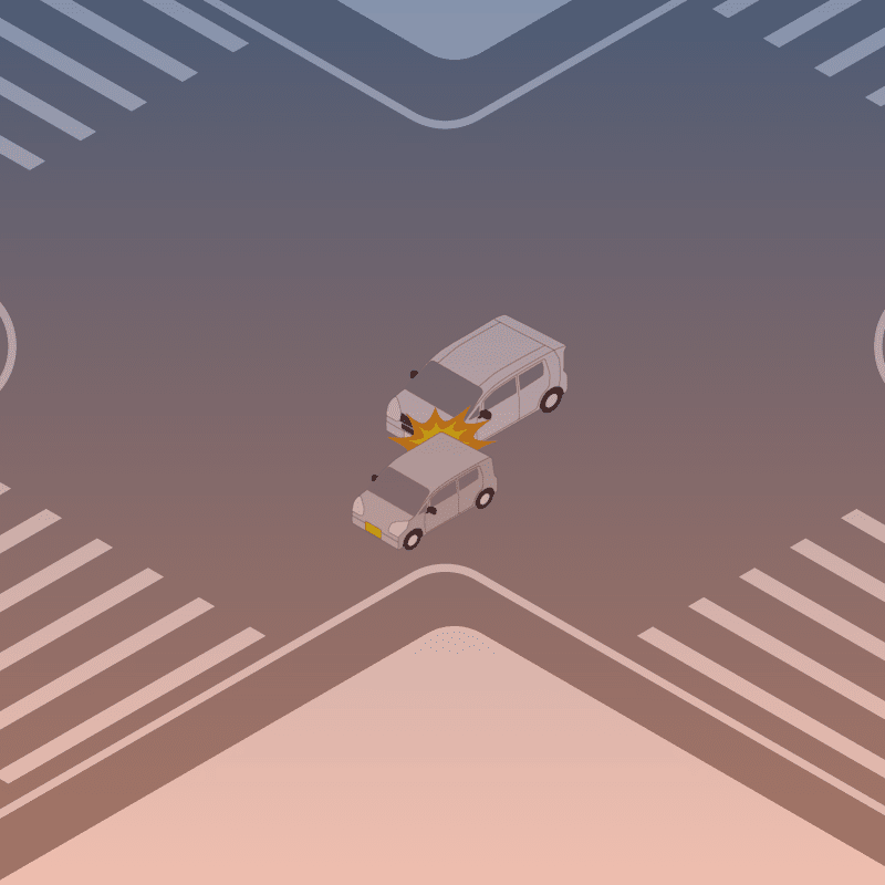 ・イラストに使用している各要素(車、背景、車、天候、信号、衝突地点など)は、代表的なイメージをイラスト化しており、色や形状等含め現実の事故の状況とは異なります。あくまで、事故のイメージとして参考までにご活用ください。