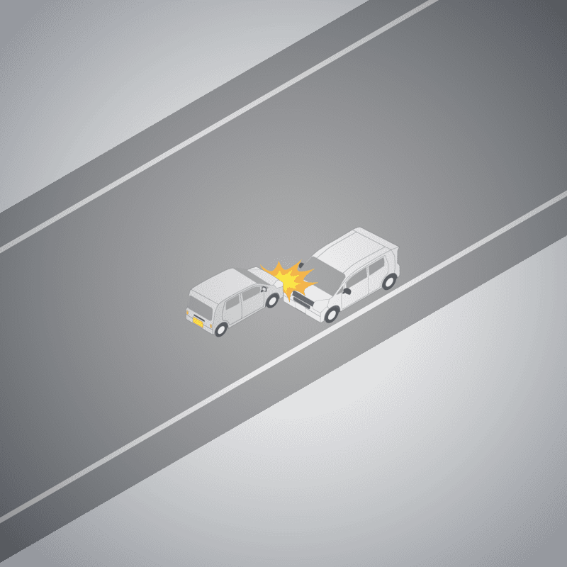 ・イラストに使用している各要素(車、背景、車、天候、信号、衝突地点など)は、代表的なイメージをイラスト化しており、色や形状等含め現実の事故の状況とは異なります。あくまで、事故のイメージとして参考までにご活用ください。