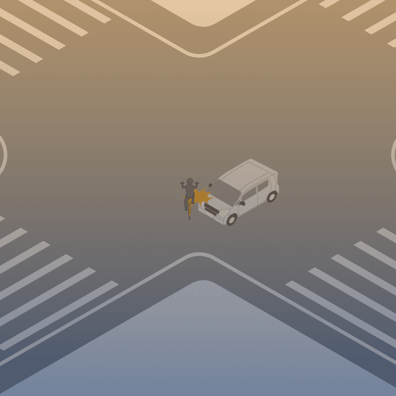 ・イラストに使用している各要素(車、背景、車、天候、信号、衝突地点など)は、代表的なイメージをイラスト化しており、色や形状等含め現実の事故の状況とは異なります。あくまで、事故のイメージとして参考までにご活用ください。