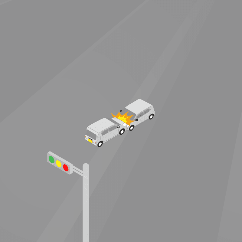 ・イラストに使用している各要素(車、背景、車、天候、信号、衝突地点など)は、代表的なイメージをイラスト化しており、色や形状等含め現実の事故の状況とは異なります。あくまで、事故のイメージとして参考までにご活用ください。