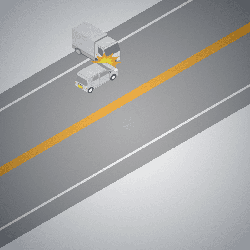 ・イラストに使用している各要素(車、背景、車、天候、信号、衝突地点など)は、代表的なイメージをイラスト化しており、色や形状等含め現実の事故の状況とは異なります。あくまで、事故のイメージとして参考までにご活用ください。