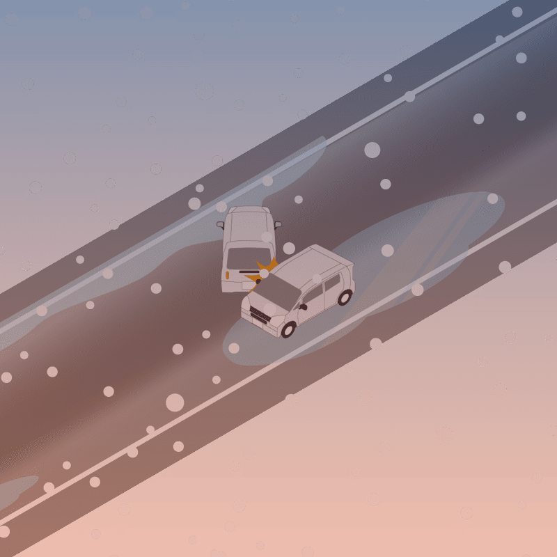 ・イラストに使用している各要素(車、背景、車、天候、信号、衝突地点など)は、代表的なイメージをイラスト化しており、色や形状等含め現実の事故の状況とは異なります。あくまで、事故のイメージとして参考までにご活用ください。