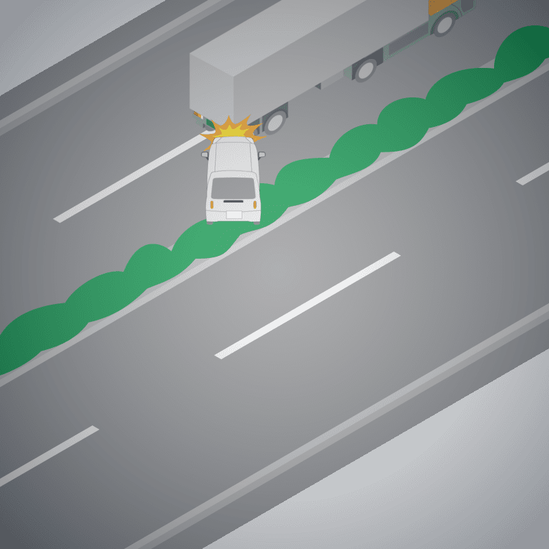・イラストに使用している各要素(車、背景、車、天候、信号、衝突地点など)は、代表的なイメージをイラスト化しており、色や形状等含め現実の事故の状況とは異なります。あくまで、事故のイメージとして参考までにご活用ください。