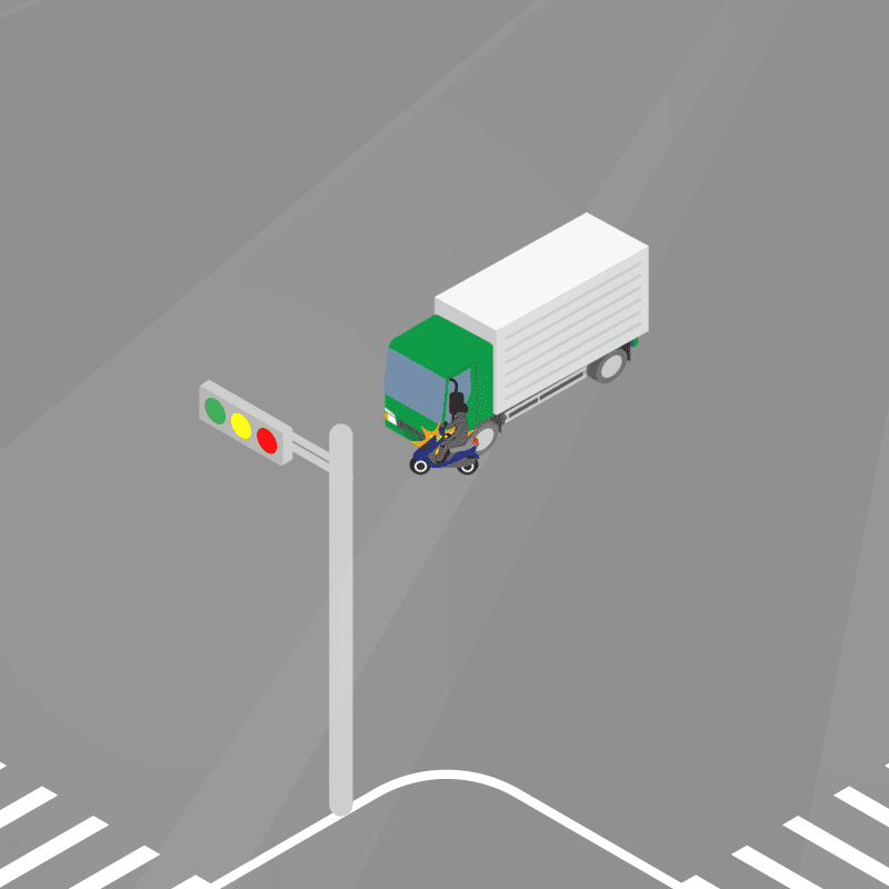 ・イラストに使用している各要素(車、背景、車、天候、信号、衝突地点など)は、代表的なイメージをイラスト化しており、色や形状等含め現実の事故の状況とは異なります。あくまで、事故のイメージとして参考までにご活用ください。
