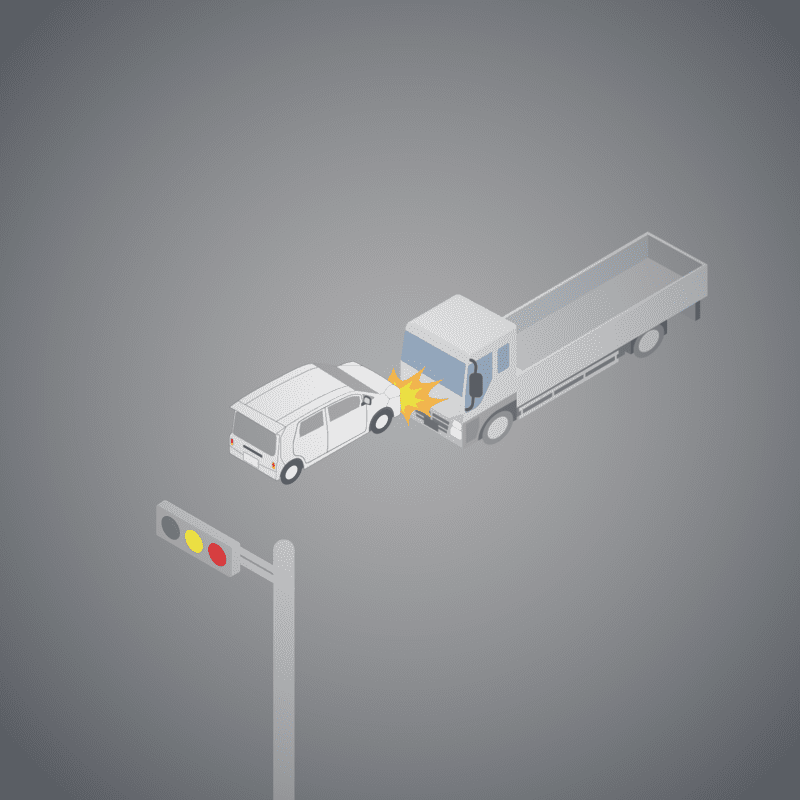 ・イラストに使用している各要素(車、背景、車、天候、信号、衝突地点など)は、代表的なイメージをイラスト化しており、色や形状等含め現実の事故の状況とは異なります。あくまで、事故のイメージとして参考までにご活用ください。