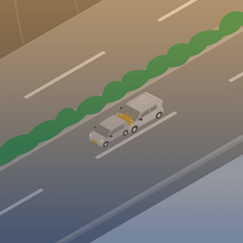 ・イラストに使用している各要素(車、背景、車、天候、信号、衝突地点など)は、代表的なイメージをイラスト化しており、色や形状等含め現実の事故の状況とは異なります。あくまで、事故のイメージとして参考までにご活用ください。
