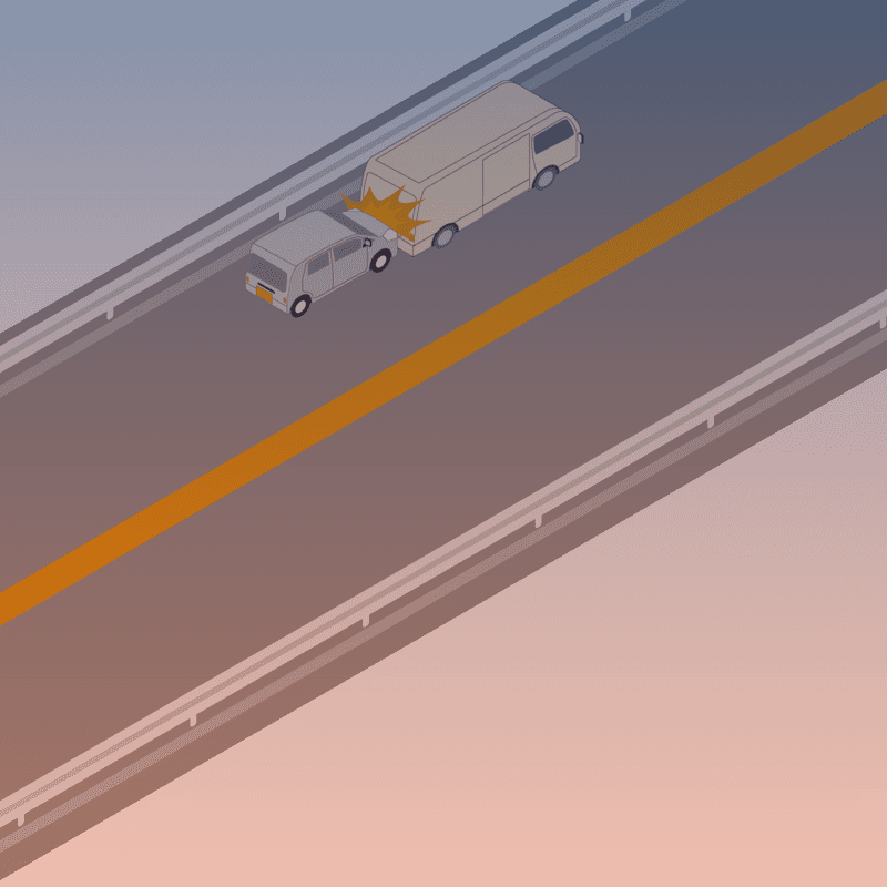 ・イラストに使用している各要素(車、背景、車、天候、信号、衝突地点など)は、代表的なイメージをイラスト化しており、色や形状等含め現実の事故の状況とは異なります。あくまで、事故のイメージとして参考までにご活用ください。