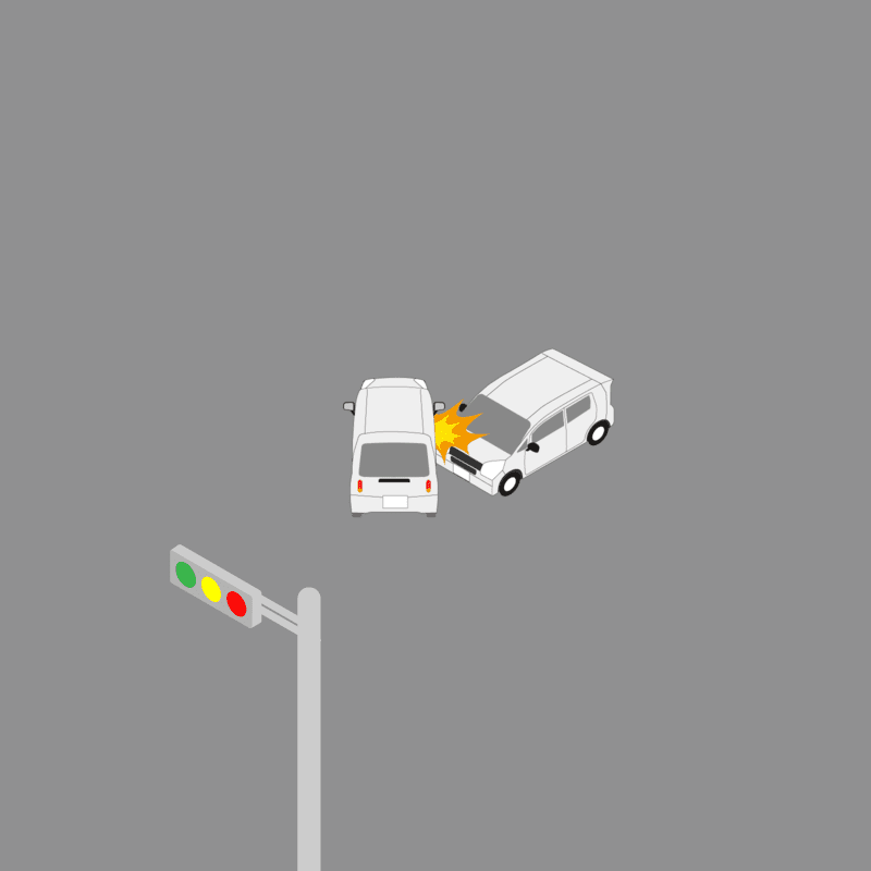・イラストに使用している各要素(車、背景、車、天候、信号、衝突地点など)は、代表的なイメージをイラスト化しており、色や形状等含め現実の事故の状況とは異なります。あくまで、事故のイメージとして参考までにご活用ください。