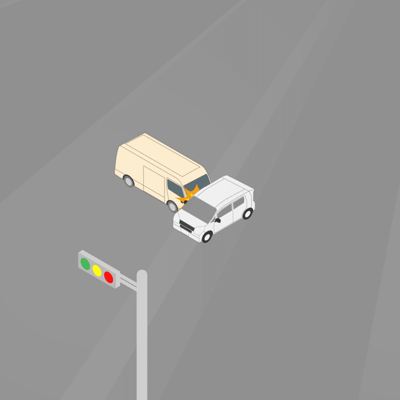 ・イラストに使用している各要素(車、背景、車、天候、信号、衝突地点など)は、代表的なイメージをイラスト化しており、色や形状等含め現実の事故の状況とは異なります。あくまで、事故のイメージとして参考までにご活用ください。