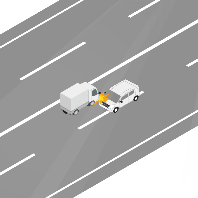 ・イラストに使用している各要素(車、背景、車、天候、信号、衝突地点など)は、代表的なイメージをイラスト化しており、色や形状等含め現実の事故の状況とは異なります。あくまで、事故のイメージとして参考までにご活用ください。