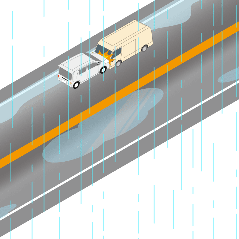 ・イラストに使用している各要素(車、背景、車、天候、信号、衝突地点など)は、代表的なイメージをイラスト化しており、色や形状等含め現実の事故の状況とは異なります。あくまで、事故のイメージとして参考までにご活用ください。