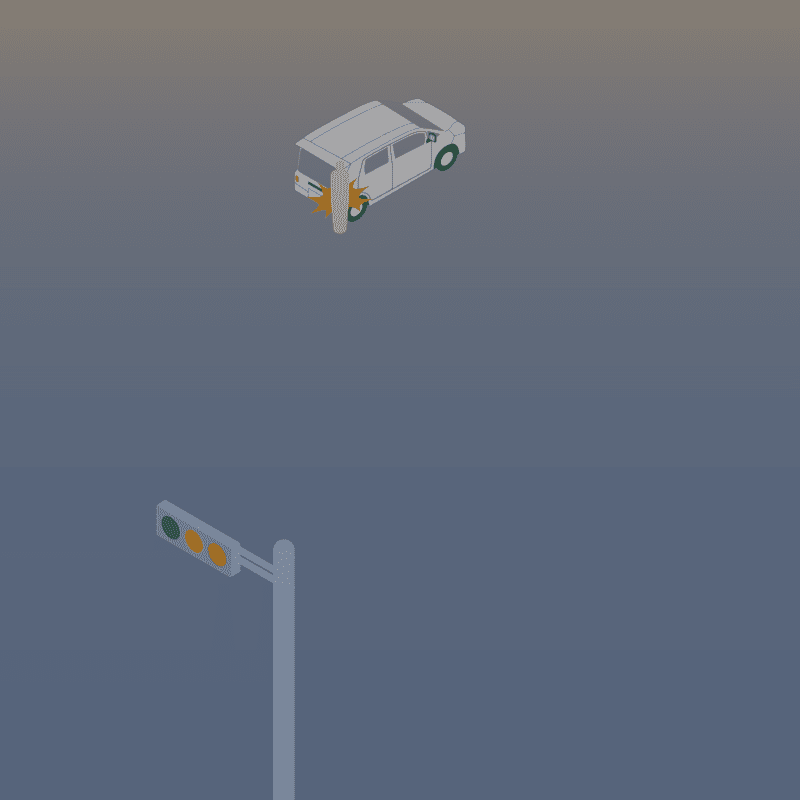 ・イラストに使用している各要素(車、背景、車、天候、信号、衝突地点など)は、代表的なイメージをイラスト化しており、色や形状等含め現実の事故の状況とは異なります。あくまで、事故のイメージとして参考までにご活用ください。