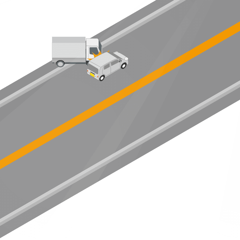 ・イラストに使用している各要素(車、背景、車、天候、信号、衝突地点など)は、代表的なイメージをイラスト化しており、色や形状等含め現実の事故の状況とは異なります。あくまで、事故のイメージとして参考までにご活用ください。