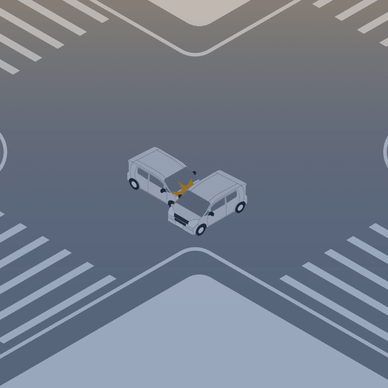 ・イラストに使用している各要素(車、背景、車、天候、信号、衝突地点など)は、代表的なイメージをイラスト化しており、色や形状等含め現実の事故の状況とは異なります。あくまで、事故のイメージとして参考までにご活用ください。