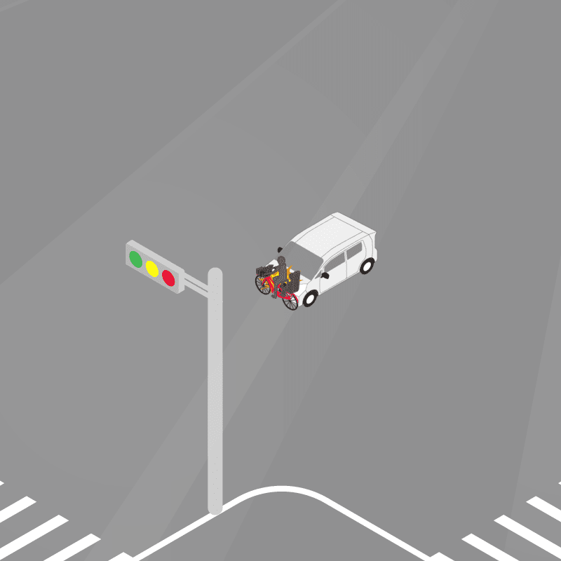 ・イラストに使用している各要素(車、背景、車、天候、信号、衝突地点など)は、代表的なイメージをイラスト化しており、色や形状等含め現実の事故の状況とは異なります。あくまで、事故のイメージとして参考までにご活用ください。