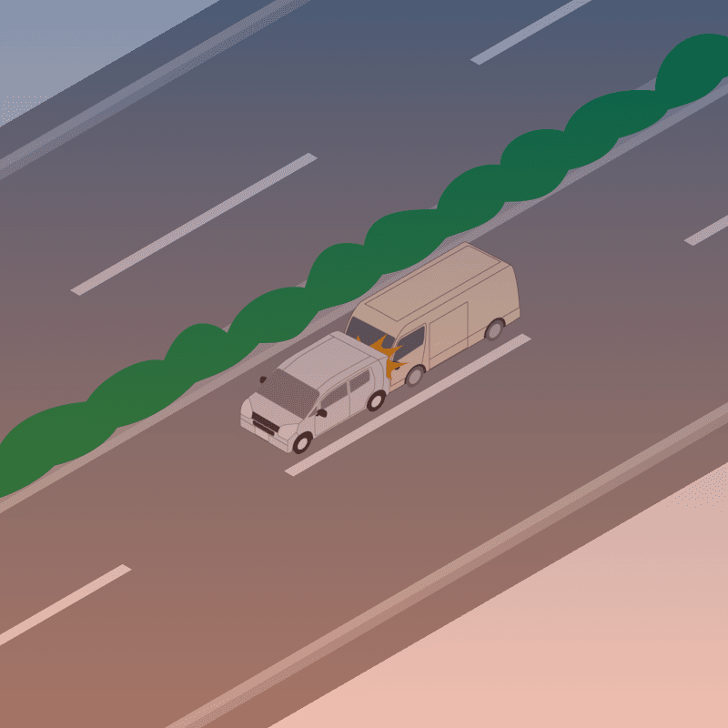 ・イラストに使用している各要素(車、背景、車、天候、信号、衝突地点など)は、代表的なイメージをイラスト化しており、色や形状等含め現実の事故の状況とは異なります。あくまで、事故のイメージとして参考までにご活用ください。