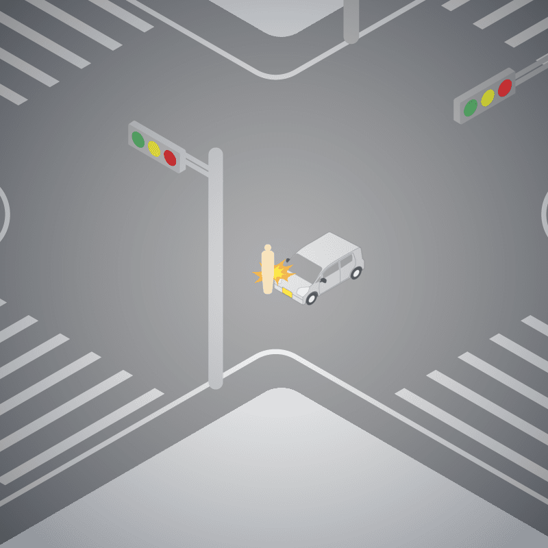 ・イラストに使用している各要素(車、背景、車、天候、信号、衝突地点など)は、代表的なイメージをイラスト化しており、色や形状等含め現実の事故の状況とは異なります。あくまで、事故のイメージとして参考までにご活用ください。