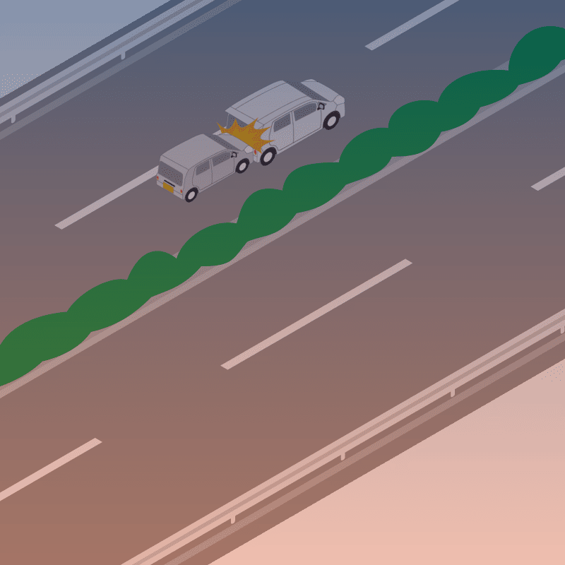 ・イラストに使用している各要素(車、背景、車、天候、信号、衝突地点など)は、代表的なイメージをイラスト化しており、色や形状等含め現実の事故の状況とは異なります。あくまで、事故のイメージとして参考までにご活用ください。