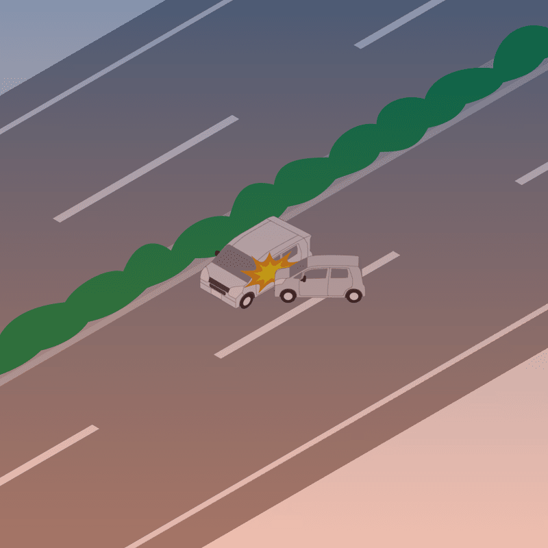 ・イラストに使用している各要素(車、背景、車、天候、信号、衝突地点など)は、代表的なイメージをイラスト化しており、色や形状等含め現実の事故の状況とは異なります。あくまで、事故のイメージとして参考までにご活用ください。
