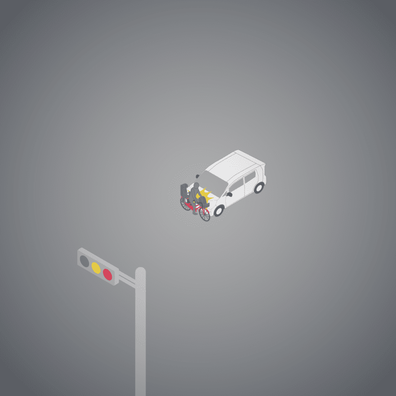 ・イラストに使用している各要素(車、背景、車、天候、信号、衝突地点など)は、代表的なイメージをイラスト化しており、色や形状等含め現実の事故の状況とは異なります。あくまで、事故のイメージとして参考までにご活用ください。
