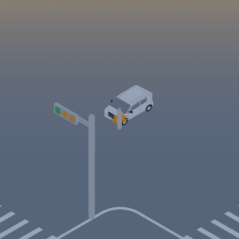 ・イラストに使用している各要素(車、背景、車、天候、信号、衝突地点など)は、代表的なイメージをイラスト化しており、色や形状等含め現実の事故の状況とは異なります。あくまで、事故のイメージとして参考までにご活用ください。