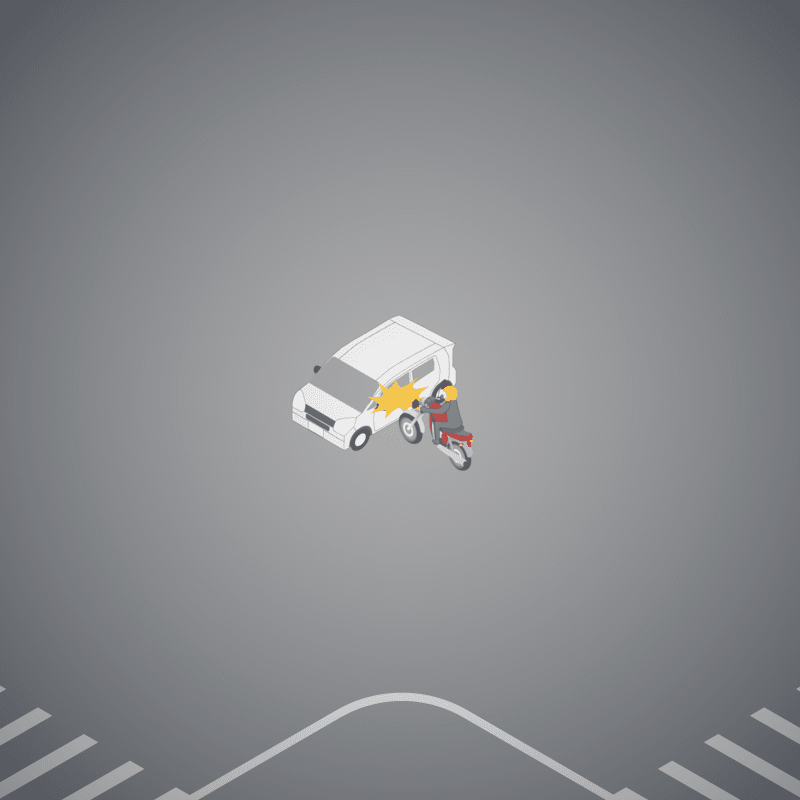 ・イラストに使用している各要素(車、背景、車、天候、信号、衝突地点など)は、代表的なイメージをイラスト化しており、色や形状等含め現実の事故の状況とは異なります。あくまで、事故のイメージとして参考までにご活用ください。