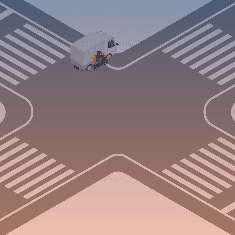 ・イラストに使用している各要素(車、背景、車、天候、信号、衝突地点など)は、代表的なイメージをイラスト化しており、色や形状等含め現実の事故の状況とは異なります。あくまで、事故のイメージとして参考までにご活用ください。