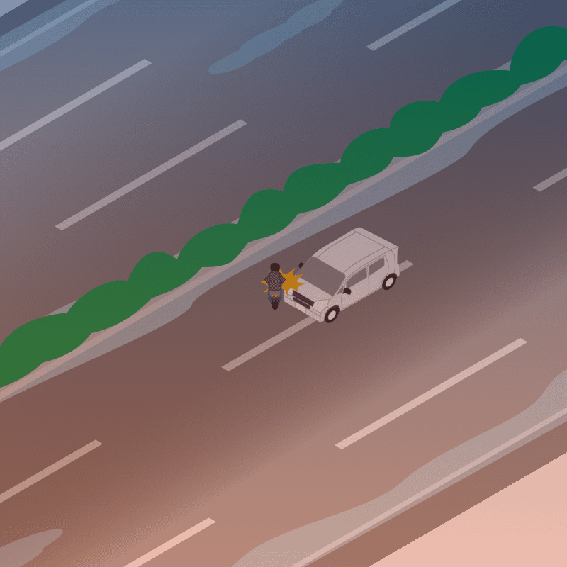 ・イラストに使用している各要素(車、背景、車、天候、信号、衝突地点など)は、代表的なイメージをイラスト化しており、色や形状等含め現実の事故の状況とは異なります。あくまで、事故のイメージとして参考までにご活用ください。