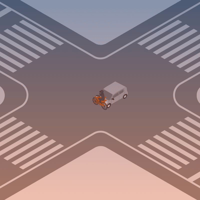 ・イラストに使用している各要素(車、背景、車、天候、信号、衝突地点など)は、代表的なイメージをイラスト化しており、色や形状等含め現実の事故の状況とは異なります。あくまで、事故のイメージとして参考までにご活用ください。